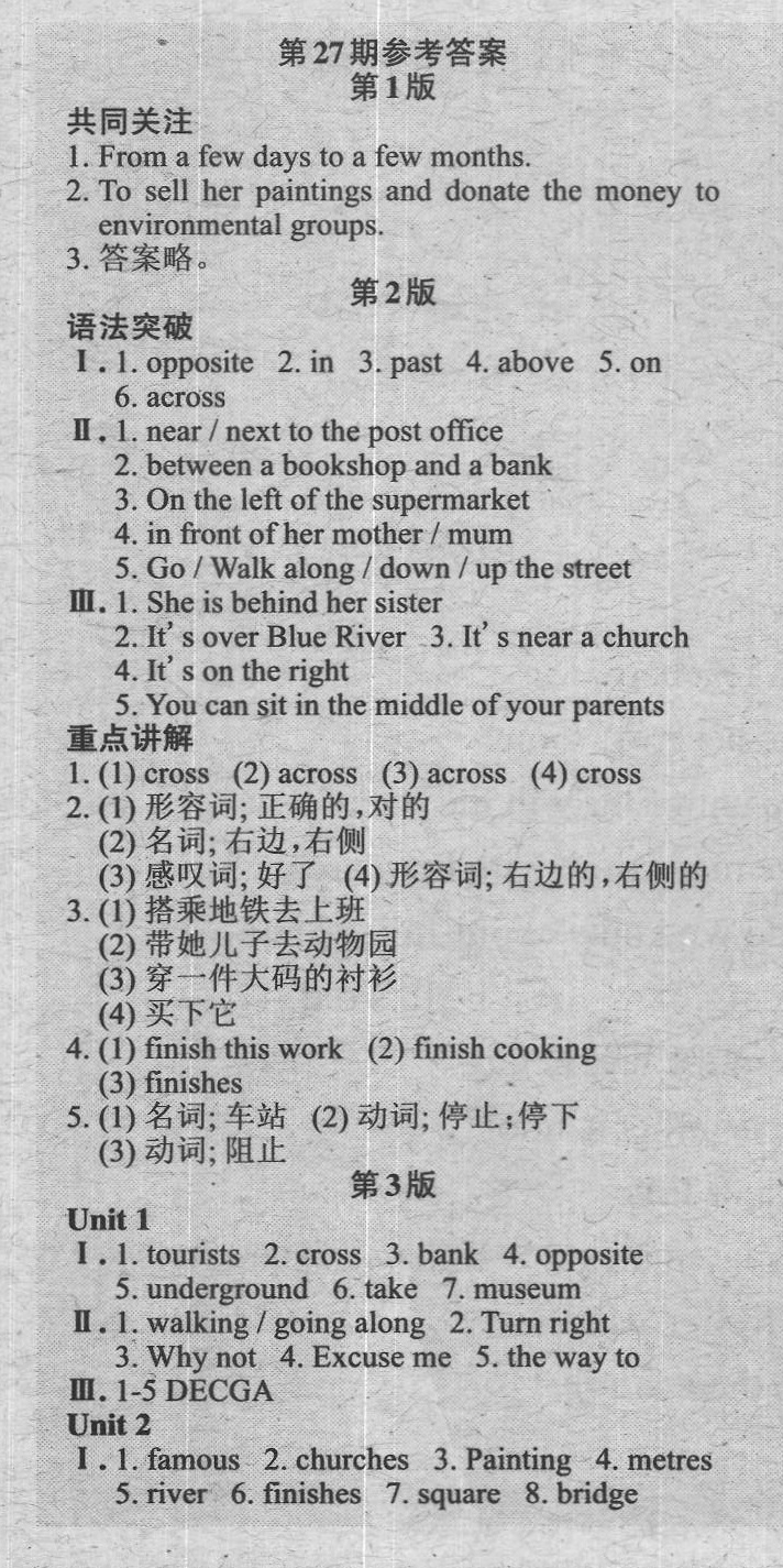 注:目前有些书本章节名称可能整理的还不是很完善,但都是按照顺序排列的,请同学们按照顺序仔细查找。练习册 2021年英语周报七年级外研版 答案主要是用来给同学们做完题方便对答案用的,请勿直接抄袭。