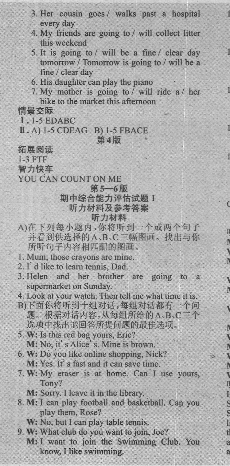 注:目前有些书本章节名称可能整理的还不是很完善,但都是按照顺序排列的,请同学们按照顺序仔细查找。练习册 2021年英语周报七年级外研版 答案主要是用来给同学们做完题方便对答案用的,请勿直接抄袭。