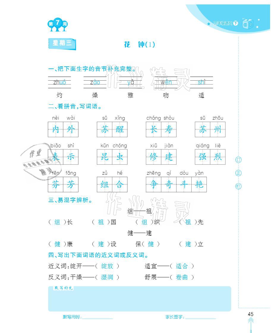 注:目前有些书本章节名称可能整理的还不是很完善,但都是按照顺序排列的,请同学们按照顺序仔细查找。练习册 2021年默写小状元三年级下册长江少年儿童出版社 答案主要是用来给同学们做完题方便对答案用的,请勿直接抄袭。