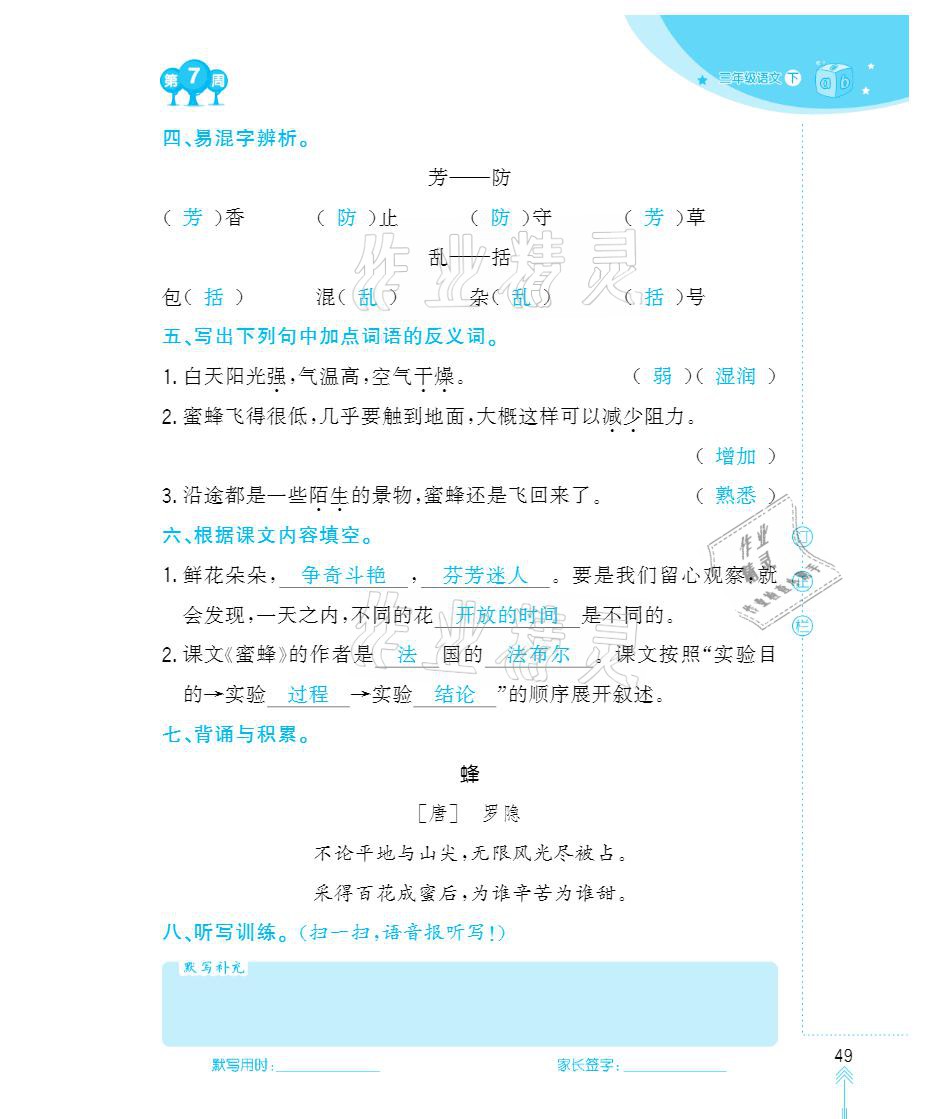 注:目前有些书本章节名称可能整理的还不是很完善,但都是按照顺序排列的,请同学们按照顺序仔细查找。练习册 2021年默写小状元三年级下册长江少年儿童出版社 答案主要是用来给同学们做完题方便对答案用的,请勿直接抄袭。