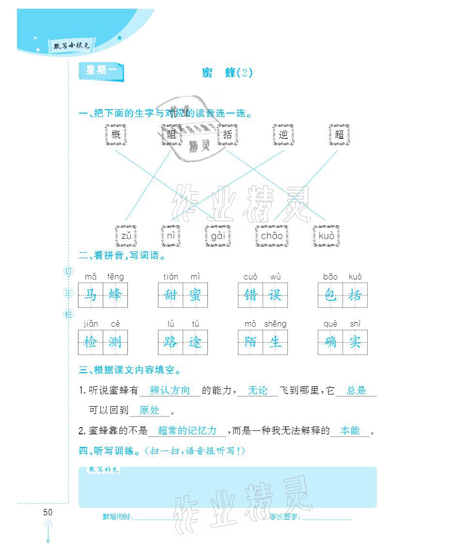 注:目前有些书本章节名称可能整理的还不是很完善,但都是按照顺序排列的,请同学们按照顺序仔细查找。练习册 2021年默写小状元三年级下册长江少年儿童出版社 答案主要是用来给同学们做完题方便对答案用的,请勿直接抄袭。
