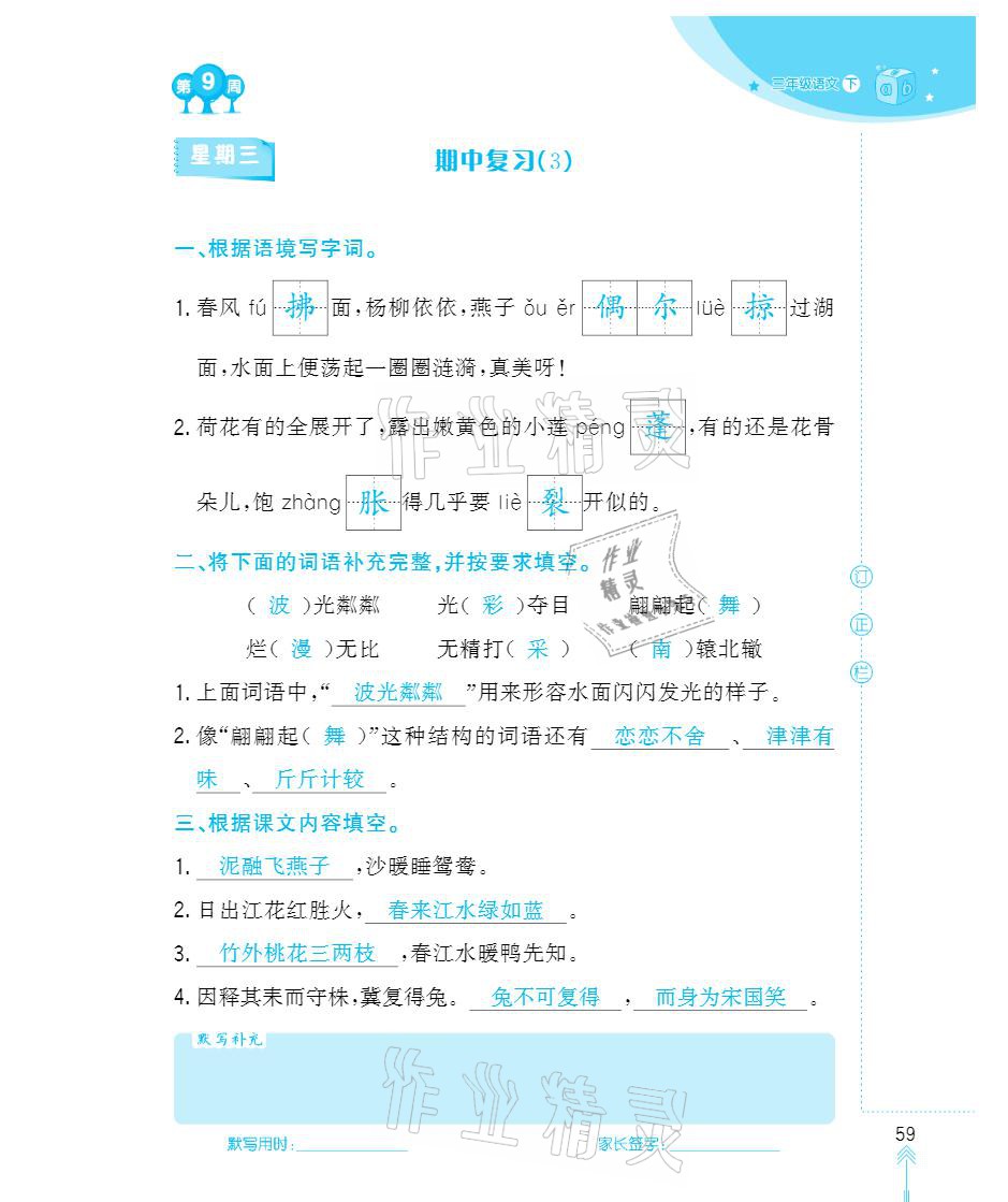 2021年默写小状元三年级下册长江少年儿童出版社