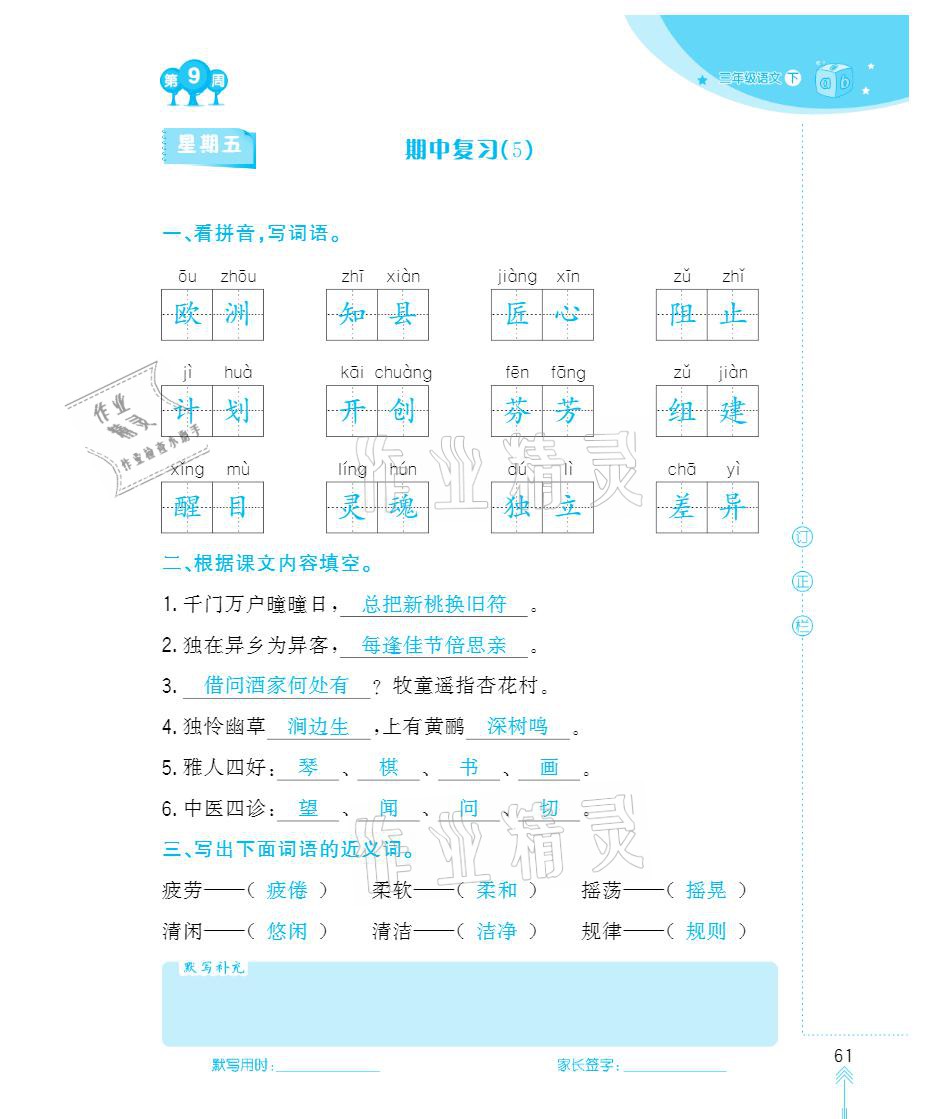注:目前有些书本章节名称可能整理的还不是很完善,但都是按照顺序排列的,请同学们按照顺序仔细查找。练习册 2021年默写小状元三年级下册长江少年儿童出版社 答案主要是用来给同学们做完题方便对答案用的,请勿直接抄袭。