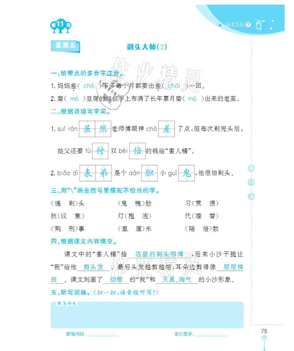 注:目前有些书本章节名称可能整理的还不是很完善,但都是按照顺序排列的,请同学们按照顺序仔细查找。练习册 2021年默写小状元三年级下册长江少年儿童出版社 答案主要是用来给同学们做完题方便对答案用的,请勿直接抄袭。