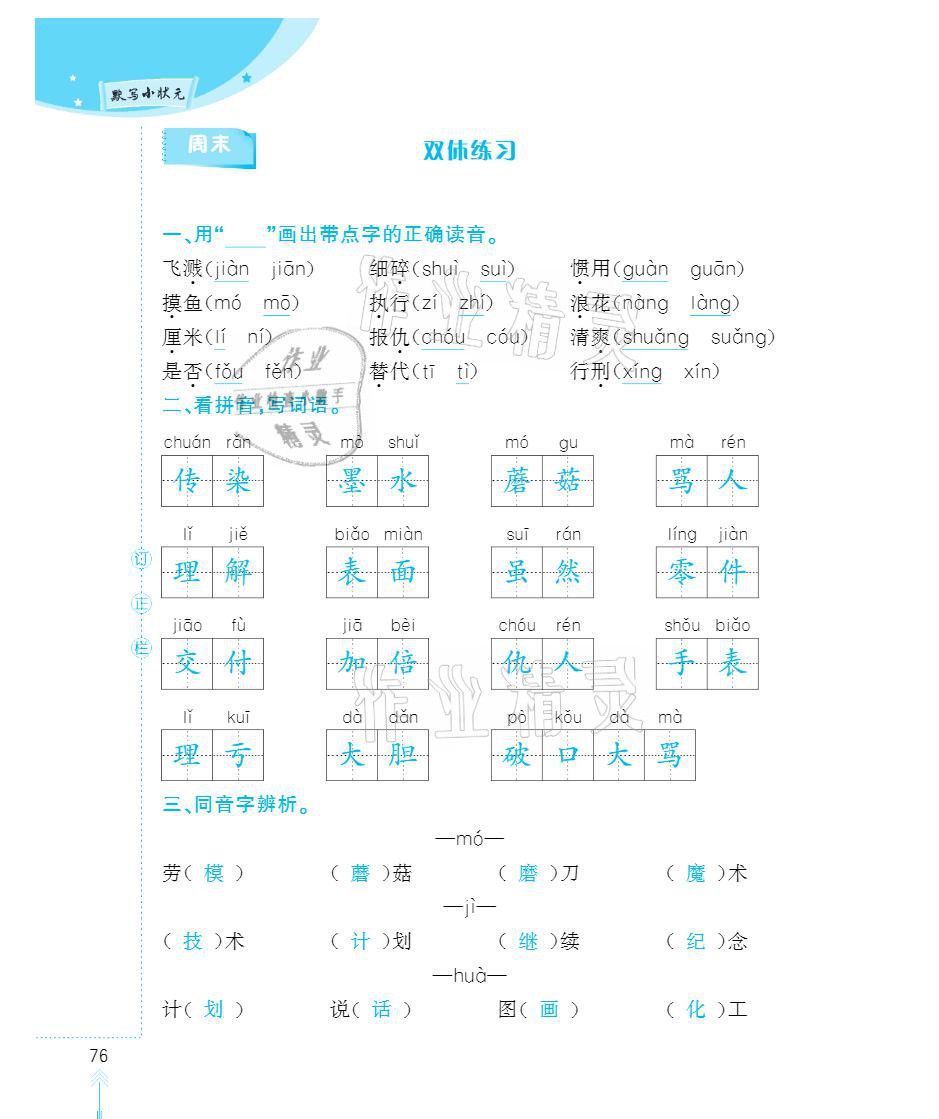 注:目前有些书本章节名称可能整理的还不是很完善,但都是按照顺序排列的,请同学们按照顺序仔细查找。练习册 2021年默写小状元三年级下册长江少年儿童出版社 答案主要是用来给同学们做完题方便对答案用的,请勿直接抄袭。