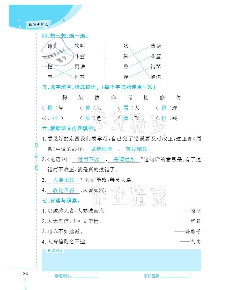 注:目前有些书本章节名称可能整理的还不是很完善,但都是按照顺序排列的,请同学们按照顺序仔细查找。练习册 2021年默写小状元三年级下册长江少年儿童出版社 答案主要是用来给同学们做完题方便对答案用的,请勿直接抄袭。