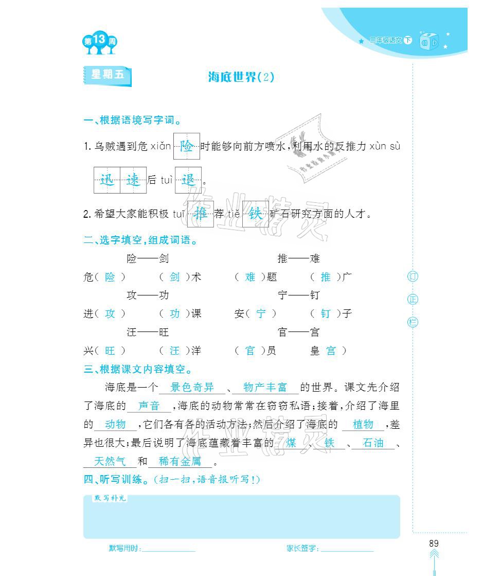 注:目前有些书本章节名称可能整理的还不是很完善,但都是按照顺序排列的,请同学们按照顺序仔细查找。练习册 2021年默写小状元三年级下册长江少年儿童出版社 答案主要是用来给同学们做完题方便对答案用的,请勿直接抄袭。