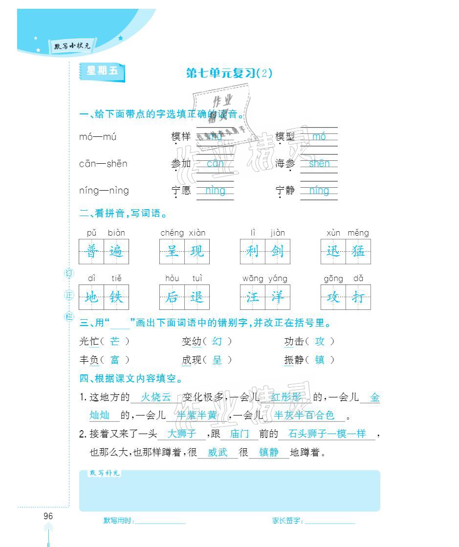 注:目前有些书本章节名称可能整理的还不是很完善,但都是按照顺序排列的,请同学们按照顺序仔细查找。练习册 2021年默写小状元三年级下册长江少年儿童出版社 答案主要是用来给同学们做完题方便对答案用的,请勿直接抄袭。