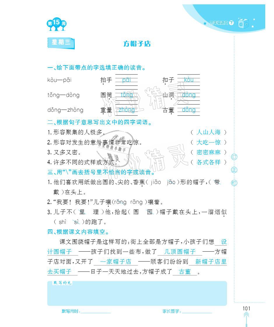 注:目前有些书本章节名称可能整理的还不是很完善,但都是按照顺序排列的,请同学们按照顺序仔细查找。练习册 2021年默写小状元三年级下册长江少年儿童出版社 答案主要是用来给同学们做完题方便对答案用的,请勿直接抄袭。