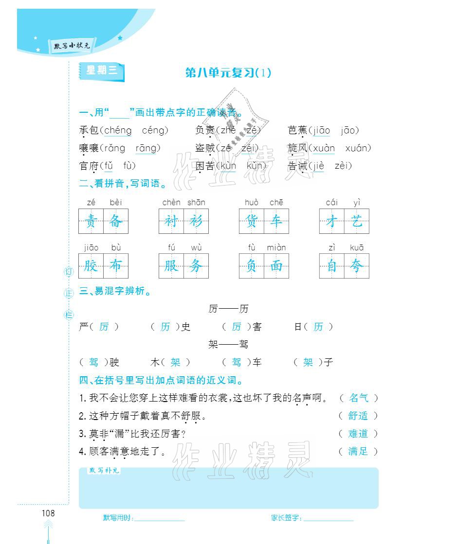 注:目前有些书本章节名称可能整理的还不是很完善,但都是按照顺序排列的,请同学们按照顺序仔细查找。练习册 2021年默写小状元三年级下册长江少年儿童出版社 答案主要是用来给同学们做完题方便对答案用的,请勿直接抄袭。