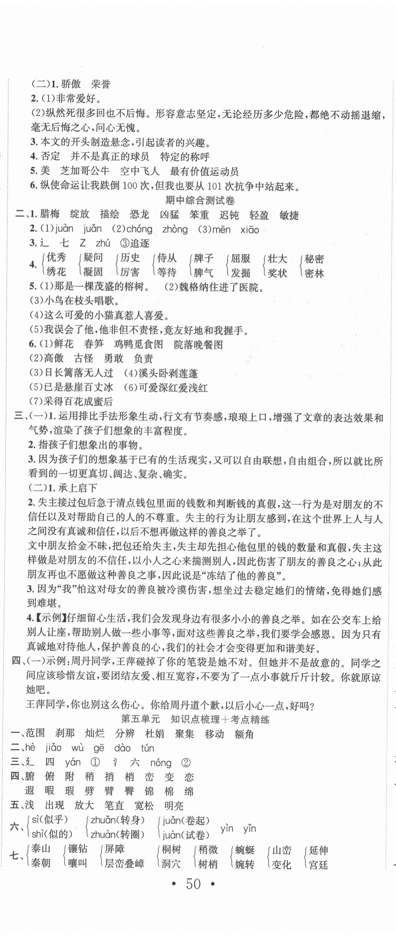 注:目前有些书本章节名称可能整理的还不是很完善,但都是按照顺序排列的,请同学们按照顺序仔细查找。练习册 2021年状元点金卷四年级语文下册人教版 答案主要是用来给同学们做完题方便对答案用的,请勿直接抄袭。