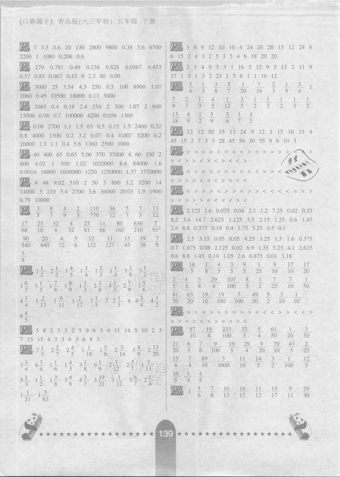 2021年数学口算题卡五年级下册青岛版六三制河北少年儿童出版社