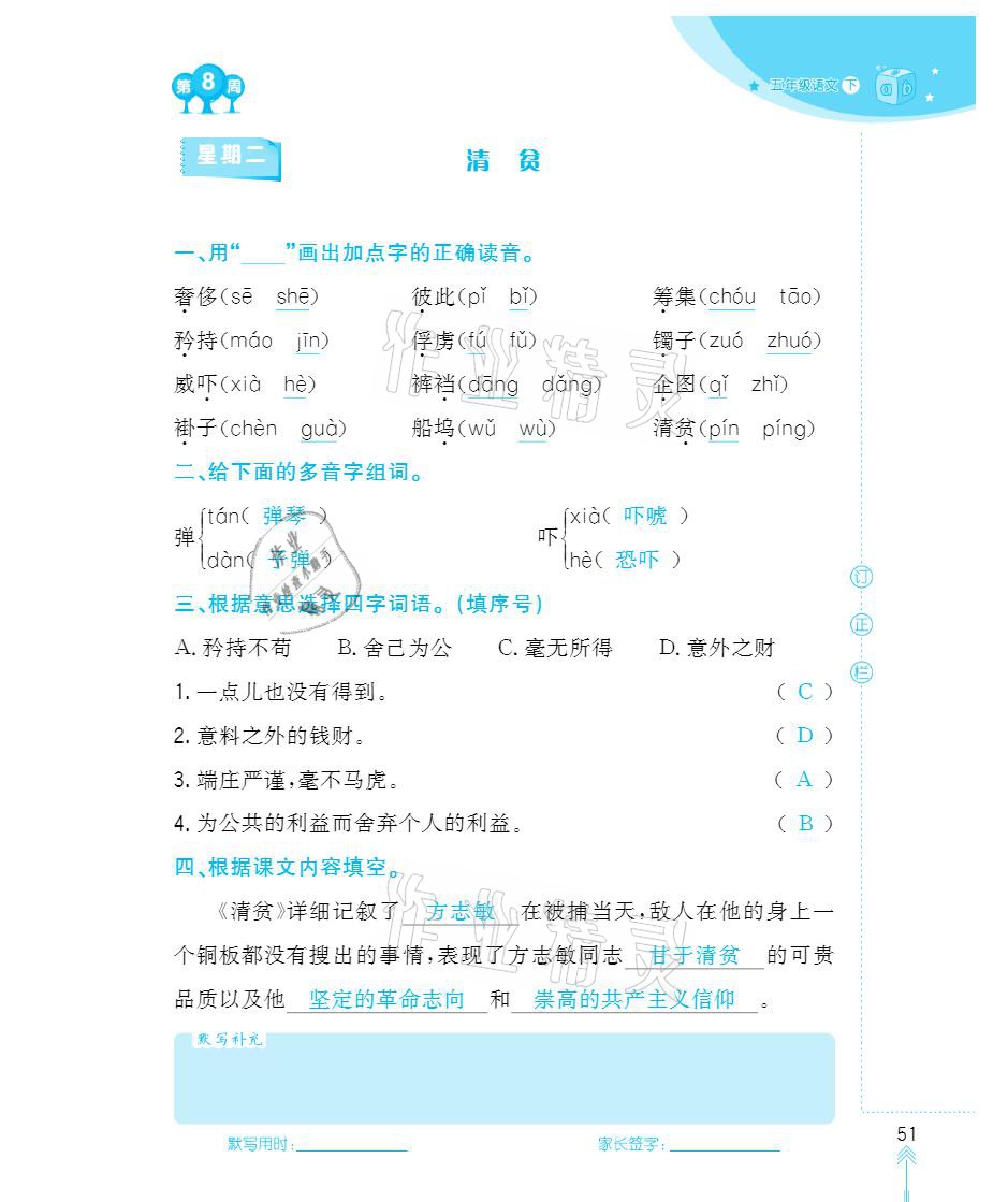 注:目前有些书本章节名称可能整理的还不是很完善,但都是按照顺序排列的,请同学们按照顺序仔细查找。练习册 2021年默写小状元五年级下册长江少年儿童出版社 答案主要是用来给同学们做完题方便对答案用的,请勿直接抄袭。