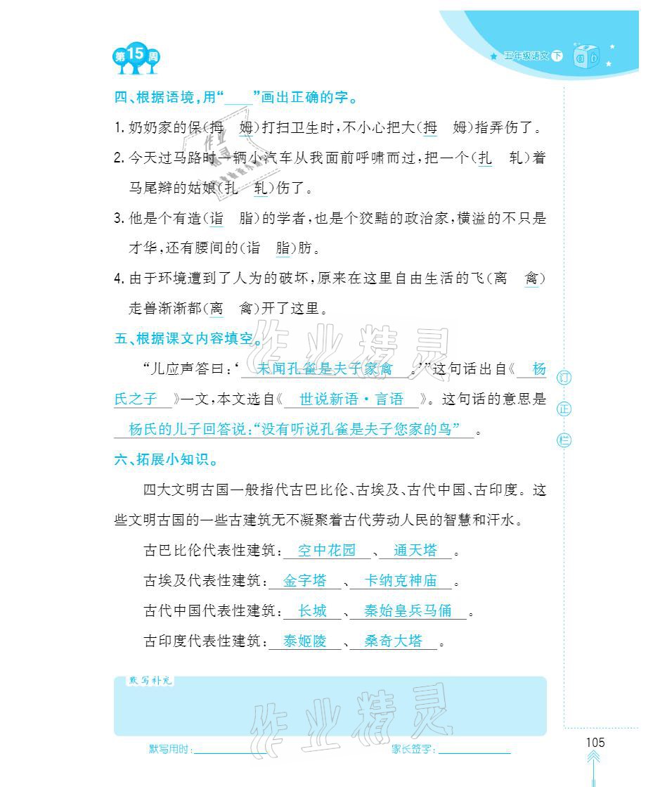 注:目前有些书本章节名称可能整理的还不是很完善,但都是按照顺序排列的,请同学们按照顺序仔细查找。练习册 2021年默写小状元五年级下册长江少年儿童出版社 答案主要是用来给同学们做完题方便对答案用的,请勿直接抄袭。