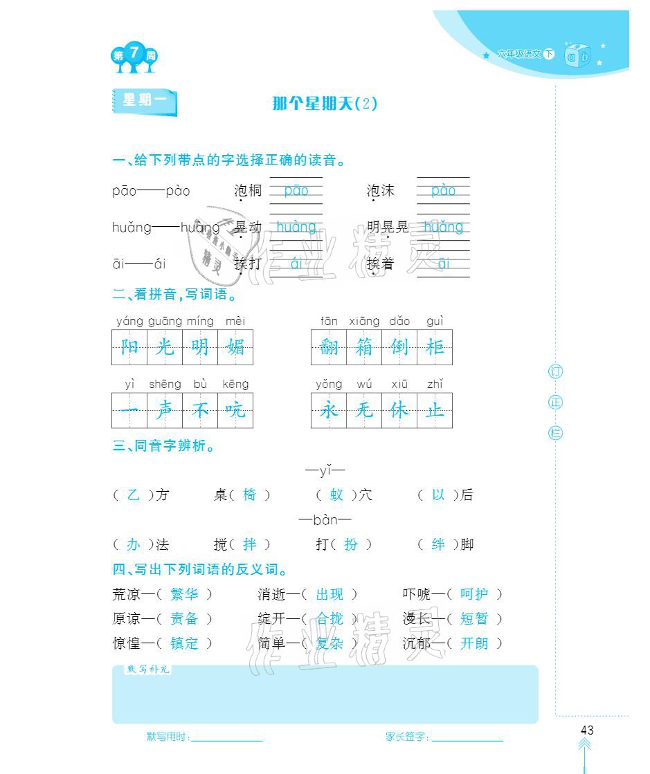注:目前有些书本章节名称可能整理的还不是很完善,但都是按照顺序排列的,请同学们按照顺序仔细查找。练习册 2021年默写小状元六年级下册长江少年儿童出版社 答案主要是用来给同学们做完题方便对答案用的,请勿直接抄袭。