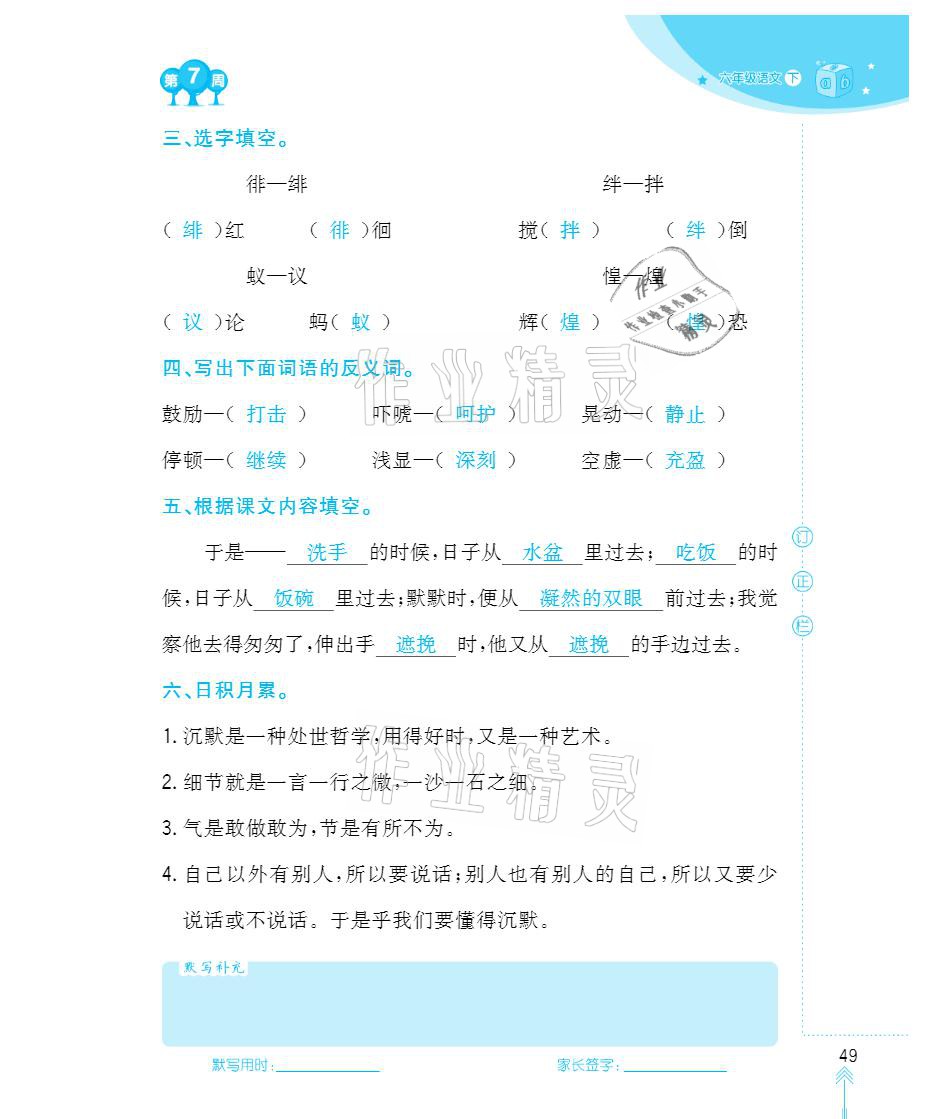 注:目前有些书本章节名称可能整理的还不是很完善,但都是按照顺序排列的,请同学们按照顺序仔细查找。练习册 2021年默写小状元六年级下册长江少年儿童出版社 答案主要是用来给同学们做完题方便对答案用的,请勿直接抄袭。
