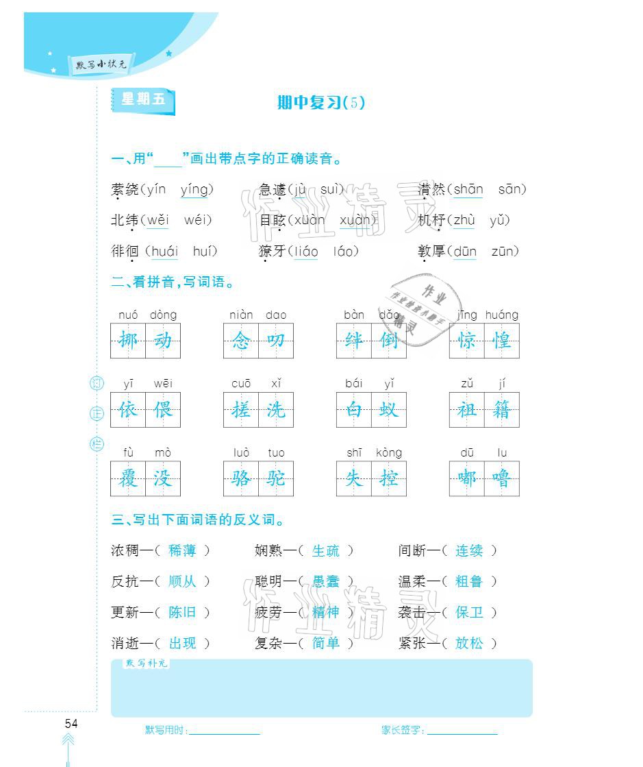 注:目前有些书本章节名称可能整理的还不是很完善,但都是按照顺序排列的,请同学们按照顺序仔细查找。练习册 2021年默写小状元六年级下册长江少年儿童出版社 答案主要是用来给同学们做完题方便对答案用的,请勿直接抄袭。