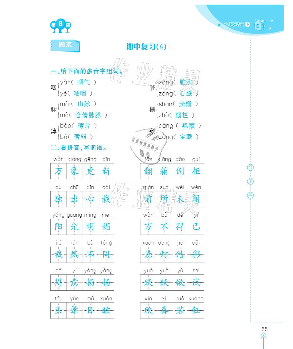 注:目前有些书本章节名称可能整理的还不是很完善,但都是按照顺序排列的,请同学们按照顺序仔细查找。练习册 2021年默写小状元六年级下册长江少年儿童出版社 答案主要是用来给同学们做完题方便对答案用的,请勿直接抄袭。