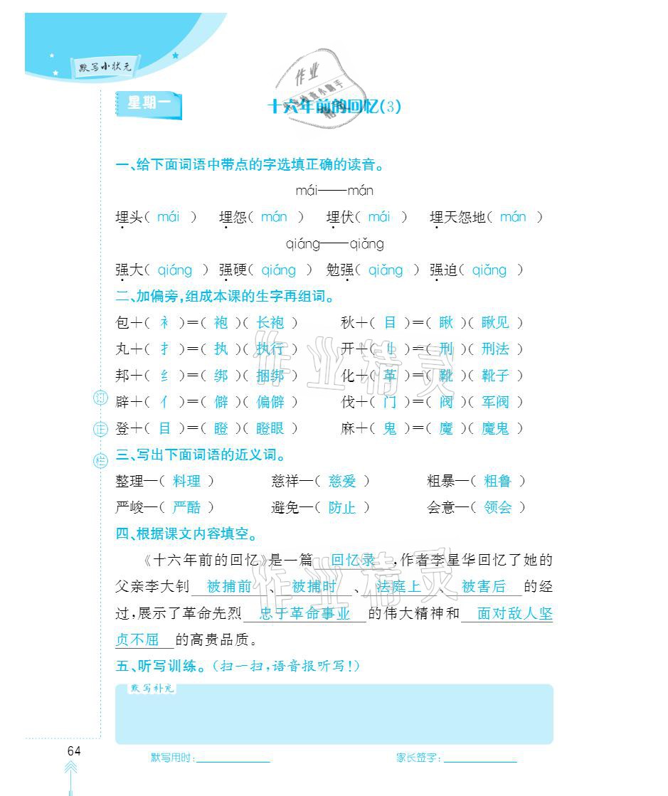 注:目前有些书本章节名称可能整理的还不是很完善,但都是按照顺序排列的,请同学们按照顺序仔细查找。练习册 2021年默写小状元六年级下册长江少年儿童出版社 答案主要是用来给同学们做完题方便对答案用的,请勿直接抄袭。