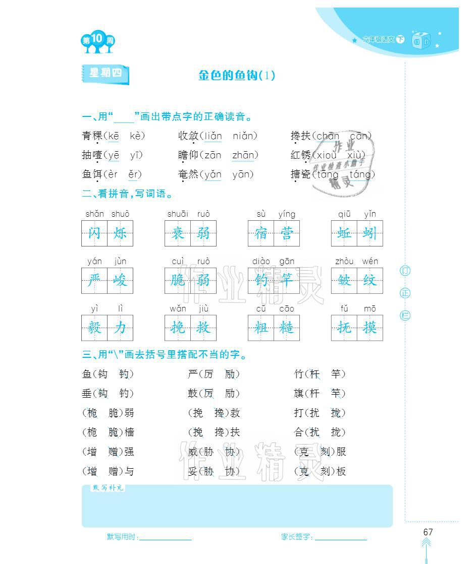 注:目前有些书本章节名称可能整理的还不是很完善,但都是按照顺序排列的,请同学们按照顺序仔细查找。练习册 2021年默写小状元六年级下册长江少年儿童出版社 答案主要是用来给同学们做完题方便对答案用的,请勿直接抄袭。