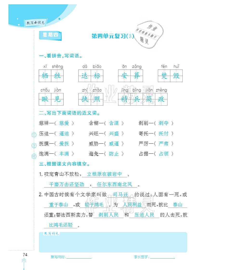 注:目前有些书本章节名称可能整理的还不是很完善,但都是按照顺序排列的,请同学们按照顺序仔细查找。练习册 2021年默写小状元六年级下册长江少年儿童出版社 答案主要是用来给同学们做完题方便对答案用的,请勿直接抄袭。