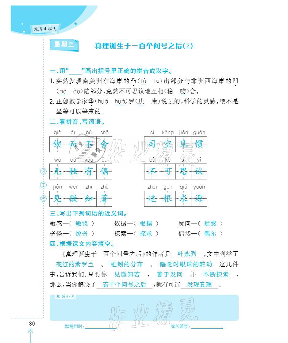 注:目前有些书本章节名称可能整理的还不是很完善,但都是按照顺序排列的,请同学们按照顺序仔细查找。练习册 2021年默写小状元六年级下册长江少年儿童出版社 答案主要是用来给同学们做完题方便对答案用的,请勿直接抄袭。