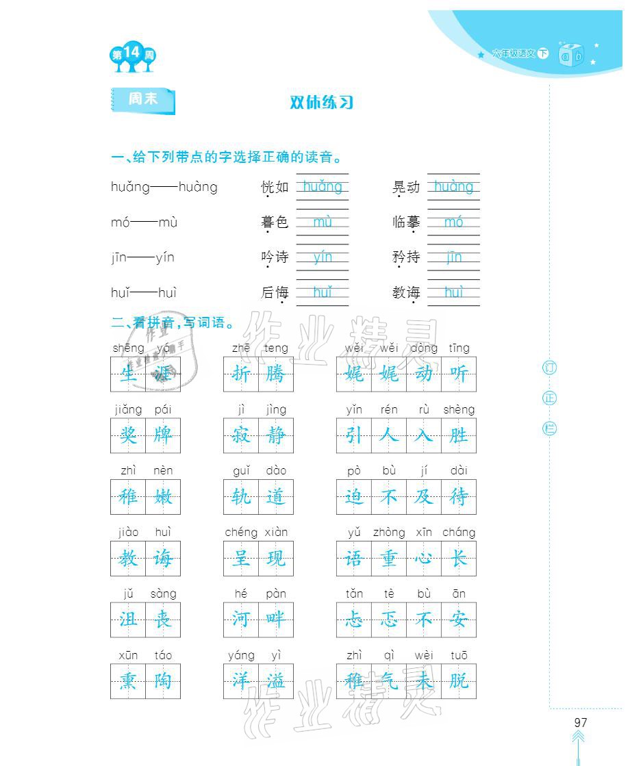 注:目前有些书本章节名称可能整理的还不是很完善,但都是按照顺序排列的,请同学们按照顺序仔细查找。练习册 2021年默写小状元六年级下册长江少年儿童出版社 答案主要是用来给同学们做完题方便对答案用的,请勿直接抄袭。