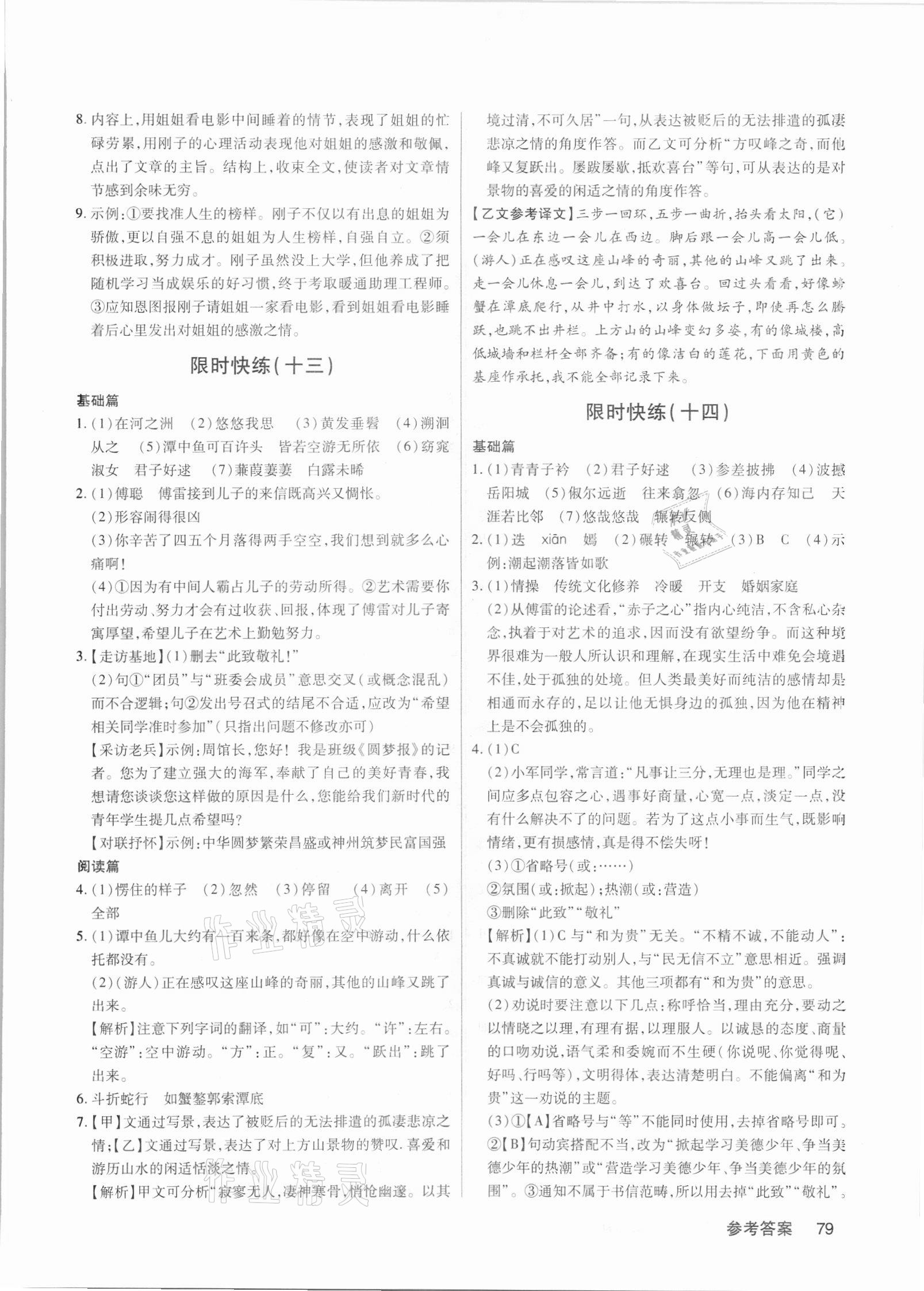 注:目前有些书本章节名称可能整理的还不是很完善,但都是按照顺序排列的,请同学们按照顺序仔细查找。练习册 2021年初中语文限时快练八年级下册人教版 答案主要是用来给同学们做完题方便对答案用的,请勿直接抄袭。
