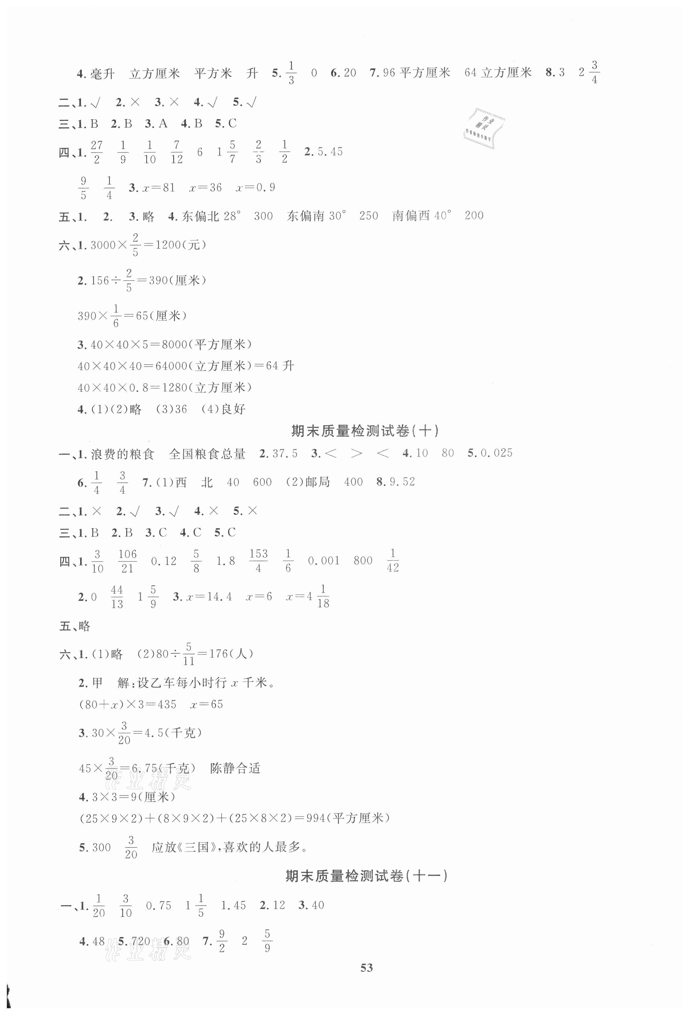注:目前有些书本章节名称可能整理的还不是很完善,但都是按照顺序排列的,请同学们按照顺序仔细查找。练习册 2021年全能金卷期末大冲刺五年级数学下册北师大版 答案主要是用来给同学们做完题方便对答案用的,请勿直接抄袭。