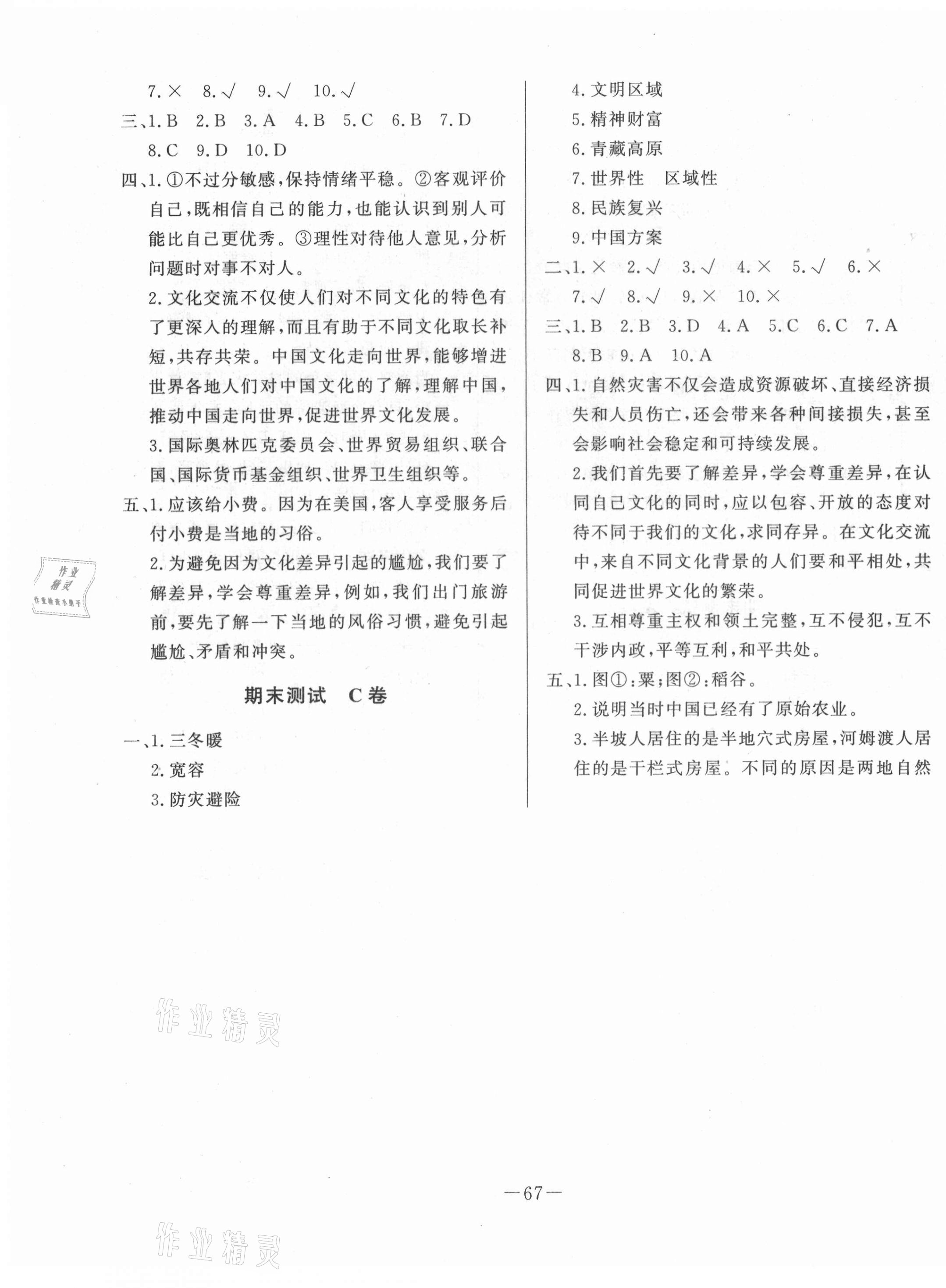 注:目前有些书本章节名称可能整理的还不是很完善,但都是按照顺序排列的,请同学们按照顺序仔细查找。练习册 2021年单元测试卷六年级道德与法治下册人教版山东文艺出版社 答案主要是用来给同学们做完题方便对答案用的,请勿直接抄袭。