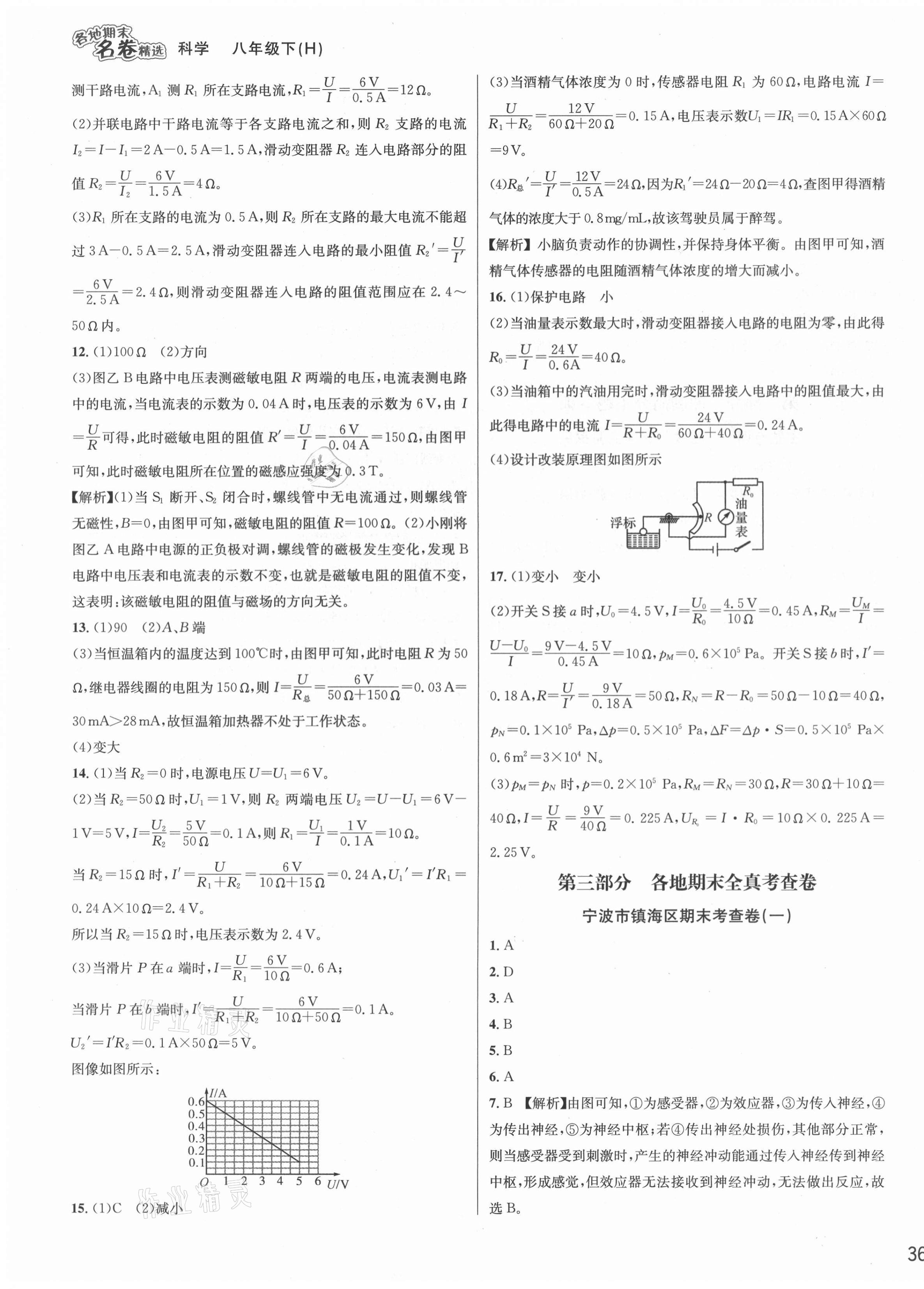 注:目前有些书本章节名称可能整理的还不是很完善,但都是按照顺序排列的,请同学们按照顺序仔细查找。练习册 2021年各地期末名卷精选八年级科学下册华师大版 答案主要是用来给同学们做完题方便对答案用的,请勿直接抄袭。