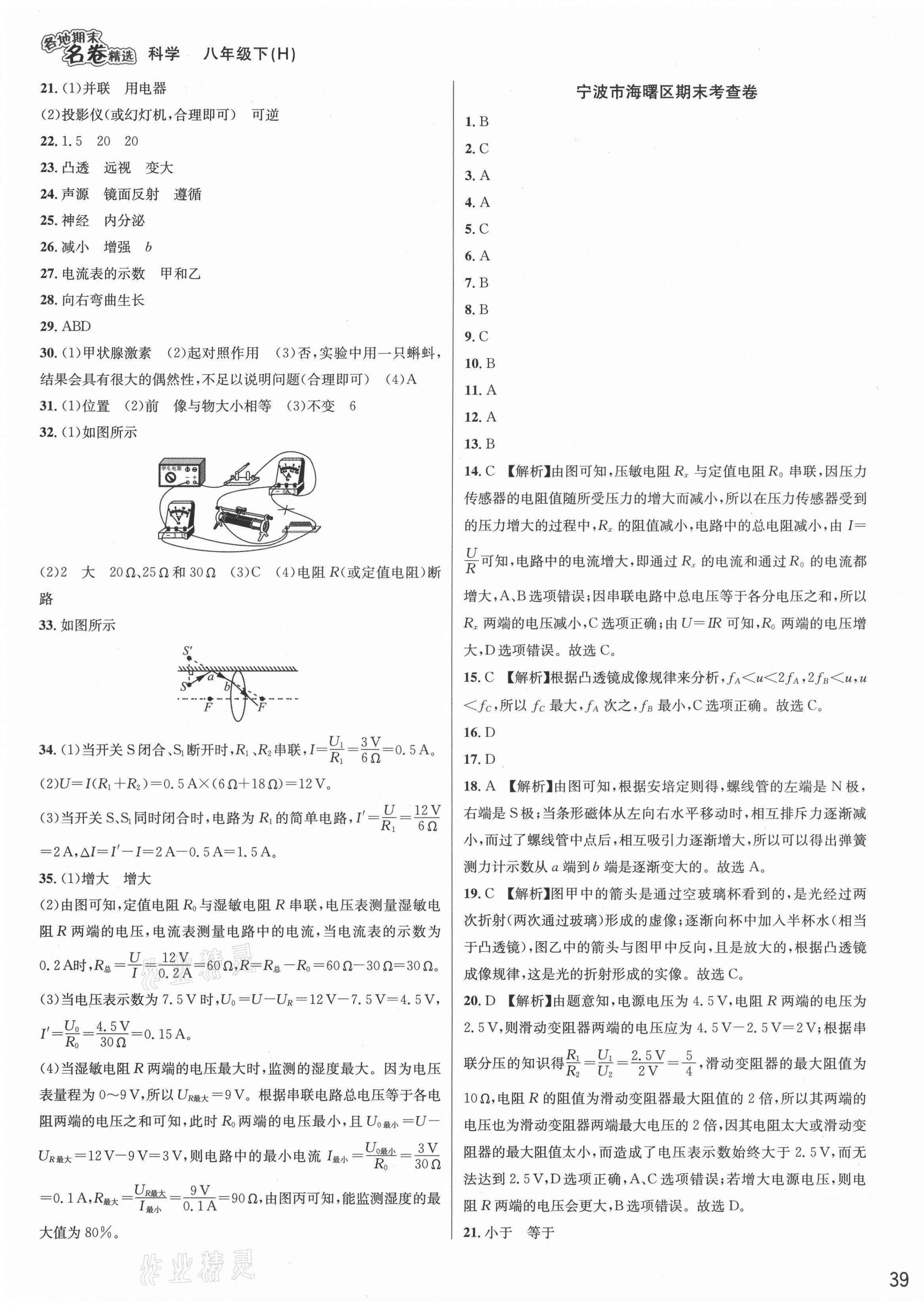 注:目前有些书本章节名称可能整理的还不是很完善,但都是按照顺序排列的,请同学们按照顺序仔细查找。练习册 2021年各地期末名卷精选八年级科学下册华师大版 答案主要是用来给同学们做完题方便对答案用的,请勿直接抄袭。
