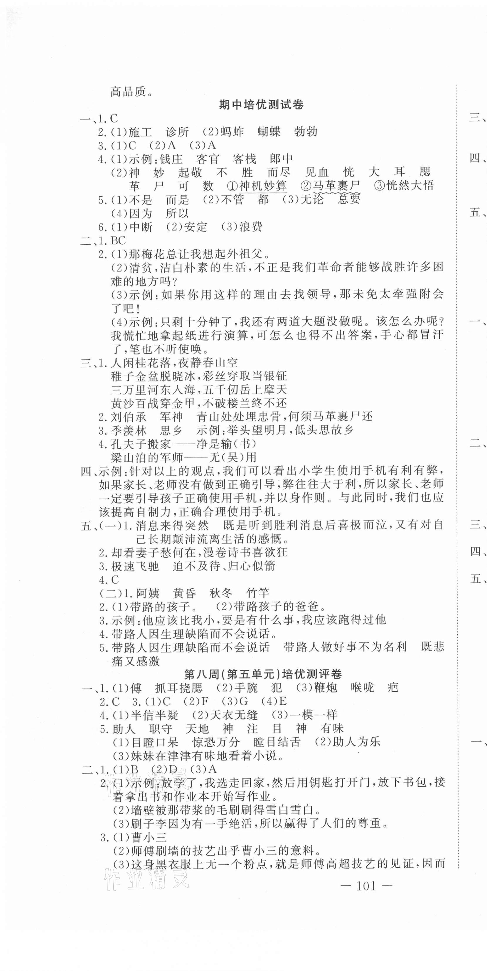 注:目前有些书本章节名称可能整理的还不是很完善,但都是按照顺序排列的,请同学们按照顺序仔细查找。练习册 2021年探究学案黄冈培优100分五年级语文下册人教版 答案主要是用来给同学们做完题方便对答案用的,请勿直接抄袭。