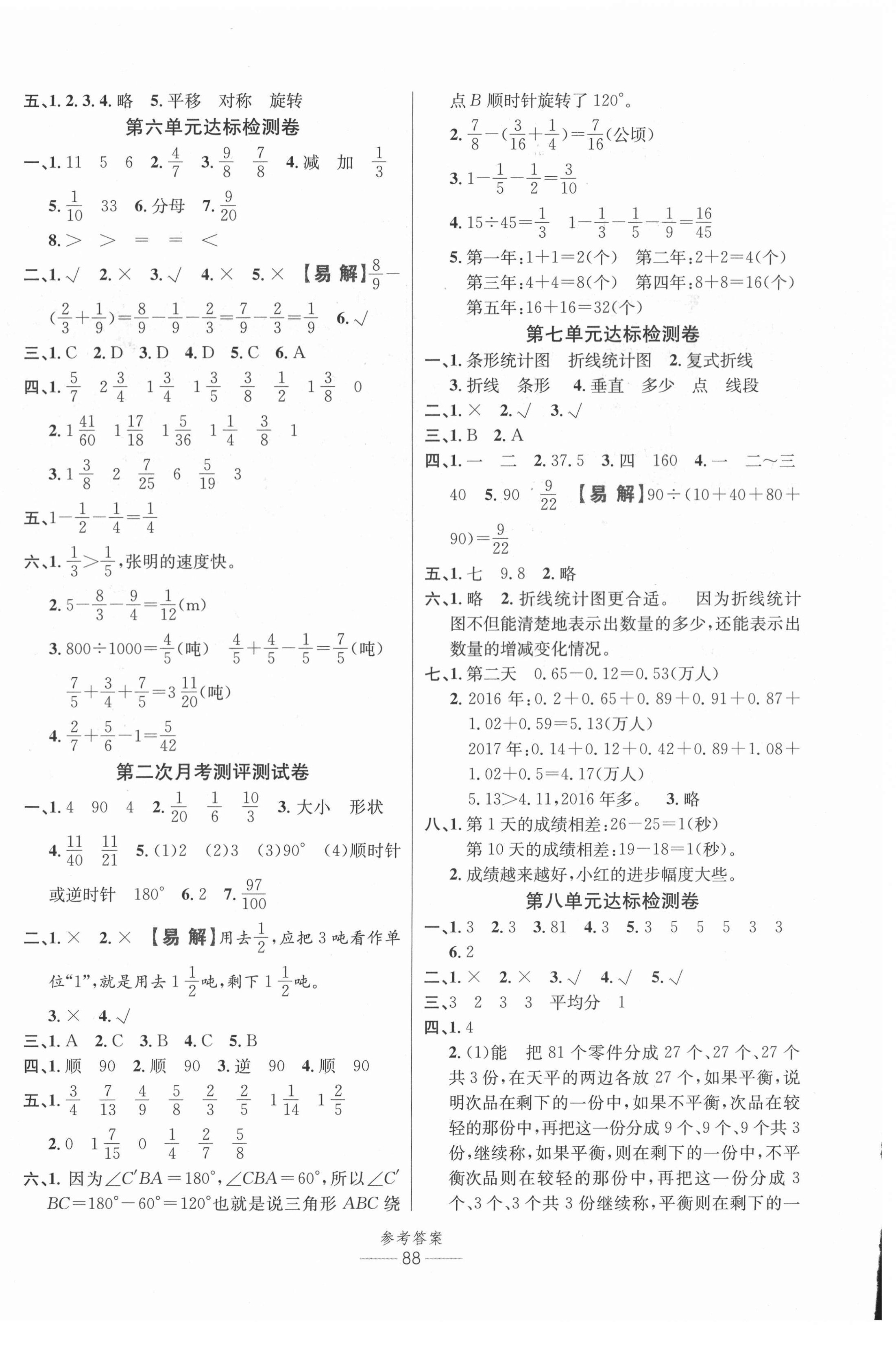 注:目前有些书本章节名称可能整理的还不是很完善,但都是按照顺序排列的,请同学们按照顺序仔细查找。练习册 2021年小学生百分易卷五年级数学下册人教版 答案主要是用来给同学们做完题方便对答案用的,请勿直接抄袭。