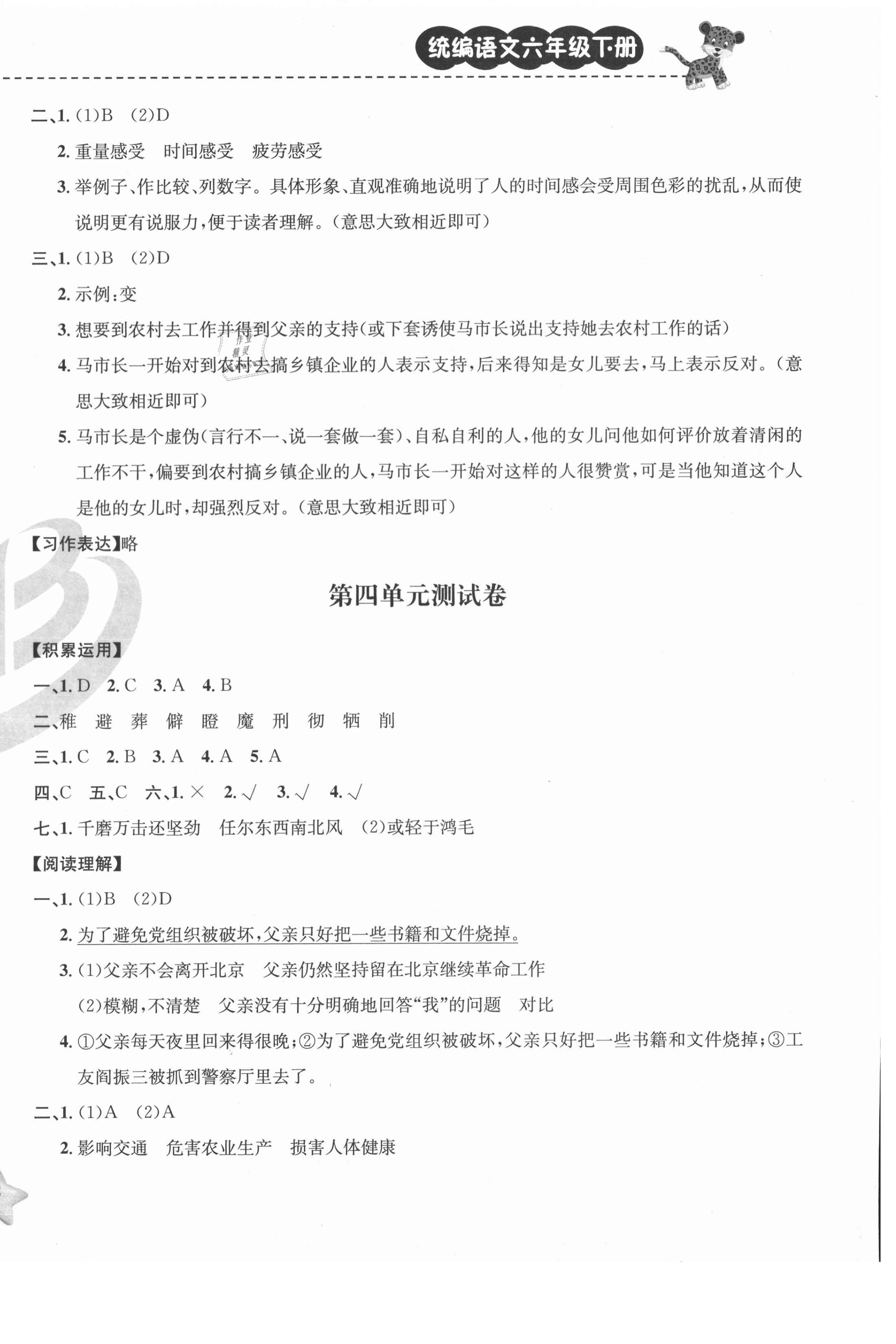 注:目前有些书本章节名称可能整理的还不是很完善,但都是按照顺序排列的,请同学们按照顺序仔细查找。练习册 2021年期末宝典单元检测分类复习卷六年级语文下册人教版 答案主要是用来给同学们做完题方便对答案用的,请勿直接抄袭。