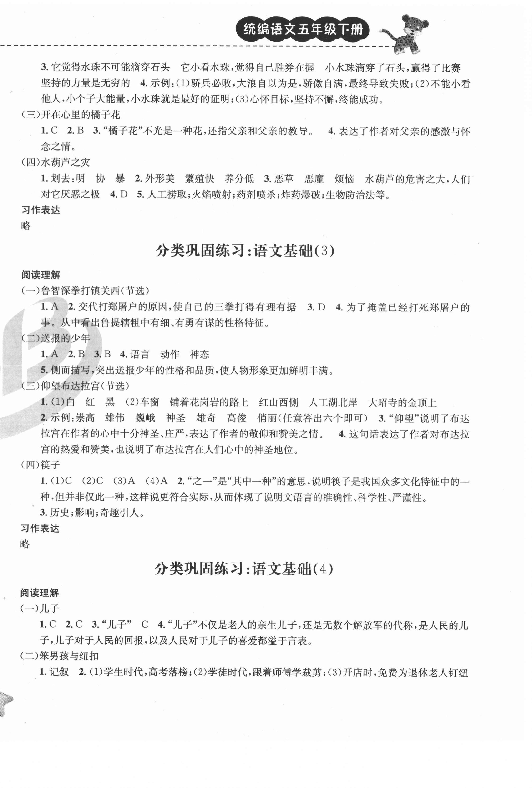 注:目前有些书本章节名称可能整理的还不是很完善,但都是按照顺序排列的,请同学们按照顺序仔细查找。练习册 2021年期末宝典单元检测分类复习卷五年级语文下册人教版 答案主要是用来给同学们做完题方便对答案用的,请勿直接抄袭。