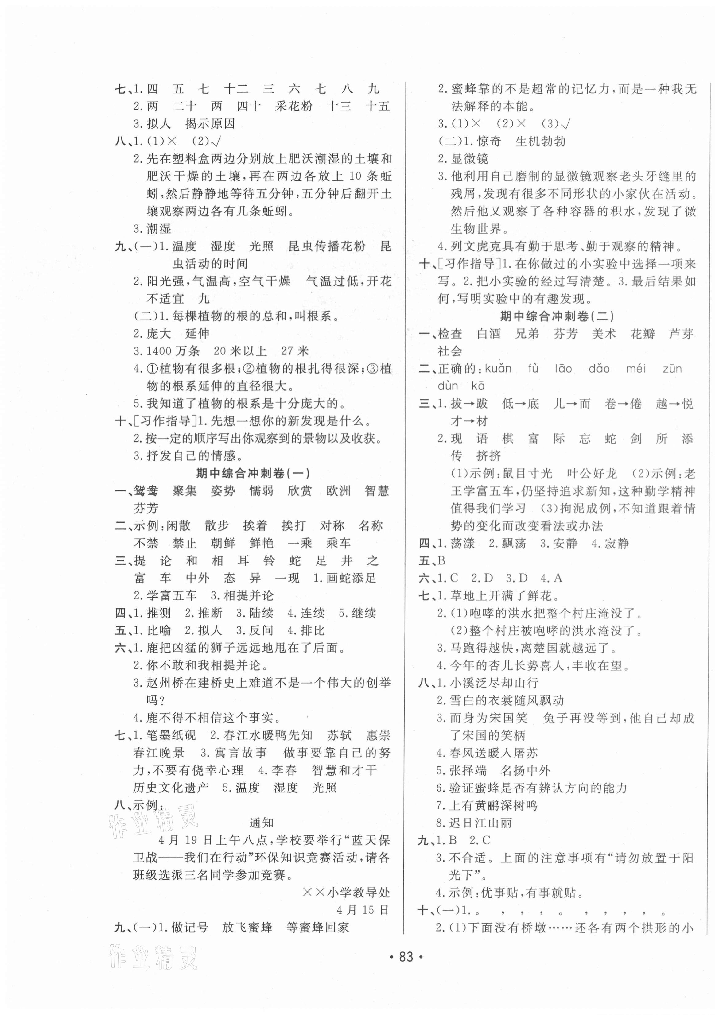 注:目前有些书本章节名称可能整理的还不是很完善,但都是按照顺序排列的,请同学们按照顺序仔细查找。练习册 2021年三翼单元测试卷黄冈100分三年级语文下册人教版 答案主要是用来给同学们做完题方便对答案用的,请勿直接抄袭。