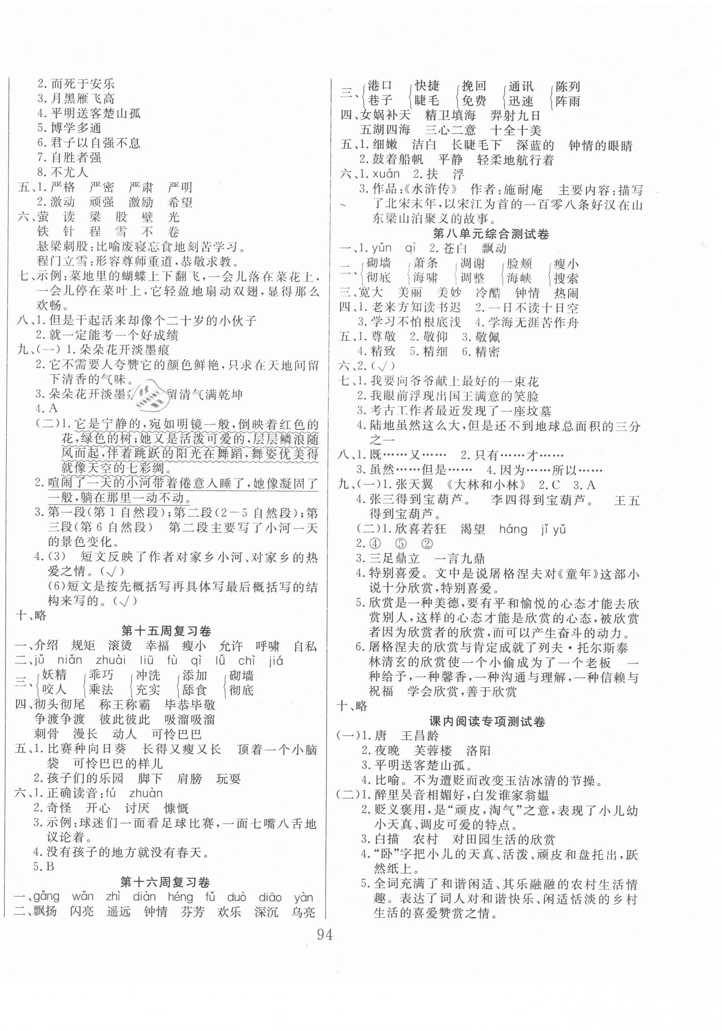 注:目前有些书本章节名称可能整理的还不是很完善,但都是按照顺序排列的,请同学们按照顺序仔细查找。练习册 2021年黄冈四清卷四年级语文下册人教版 答案主要是用来给同学们做完题方便对答案用的,请勿直接抄袭。