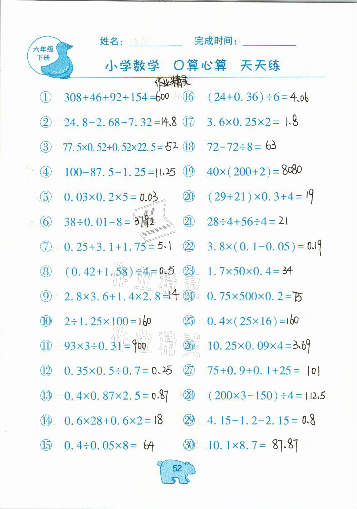 注:目前有些书本章节名称可能整理的还不是很完善,但都是按照顺序排列的,请同学们按照顺序仔细查找。练习册 2021年文墨小学数学口算心算天天练六年级数学下册冀教版 答案主要是用来给同学们做完题方便对答案用的,请勿直接抄袭。