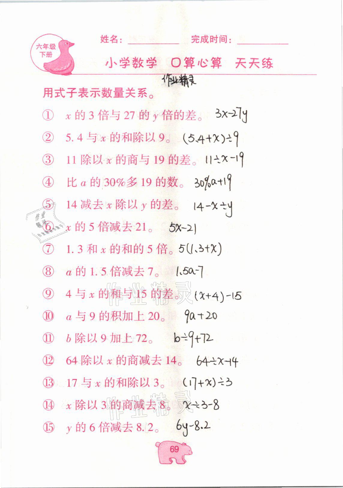 注:目前有些书本章节名称可能整理的还不是很完善,但都是按照顺序排列的,请同学们按照顺序仔细查找。练习册 2021年文墨小学数学口算心算天天练六年级数学下册冀教版 答案主要是用来给同学们做完题方便对答案用的,请勿直接抄袭。