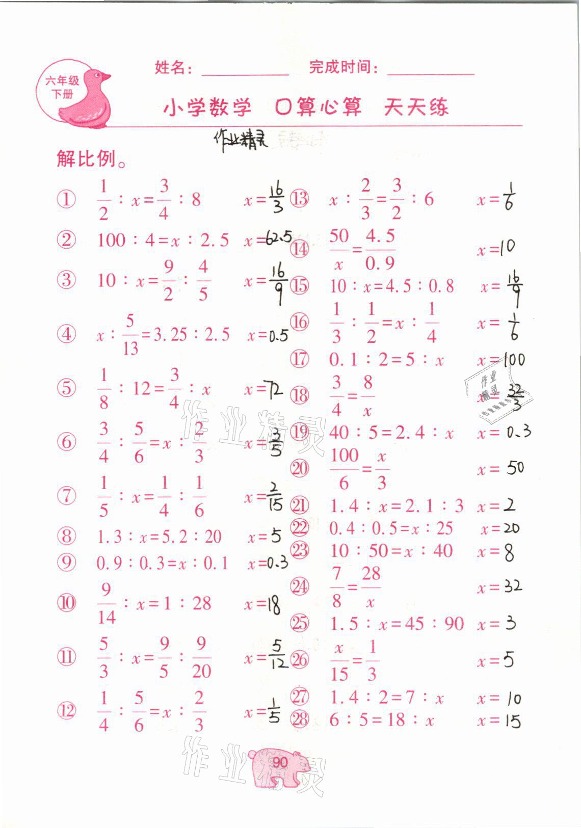 2021年文墨小学数学口算心算天天练六年级数学下册冀教版
