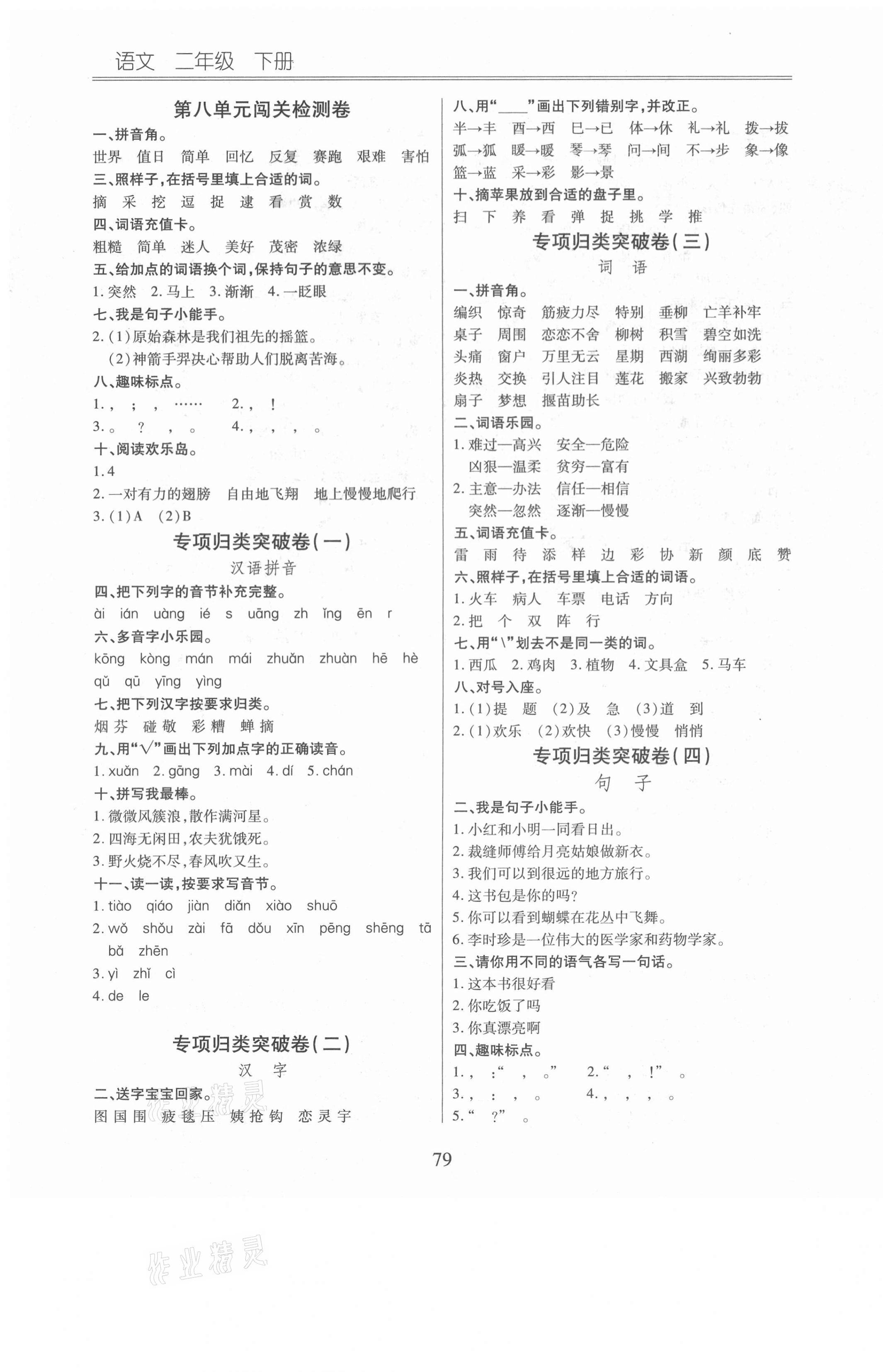 2021年小学单元同步核心密卷二年级语文下册人教版