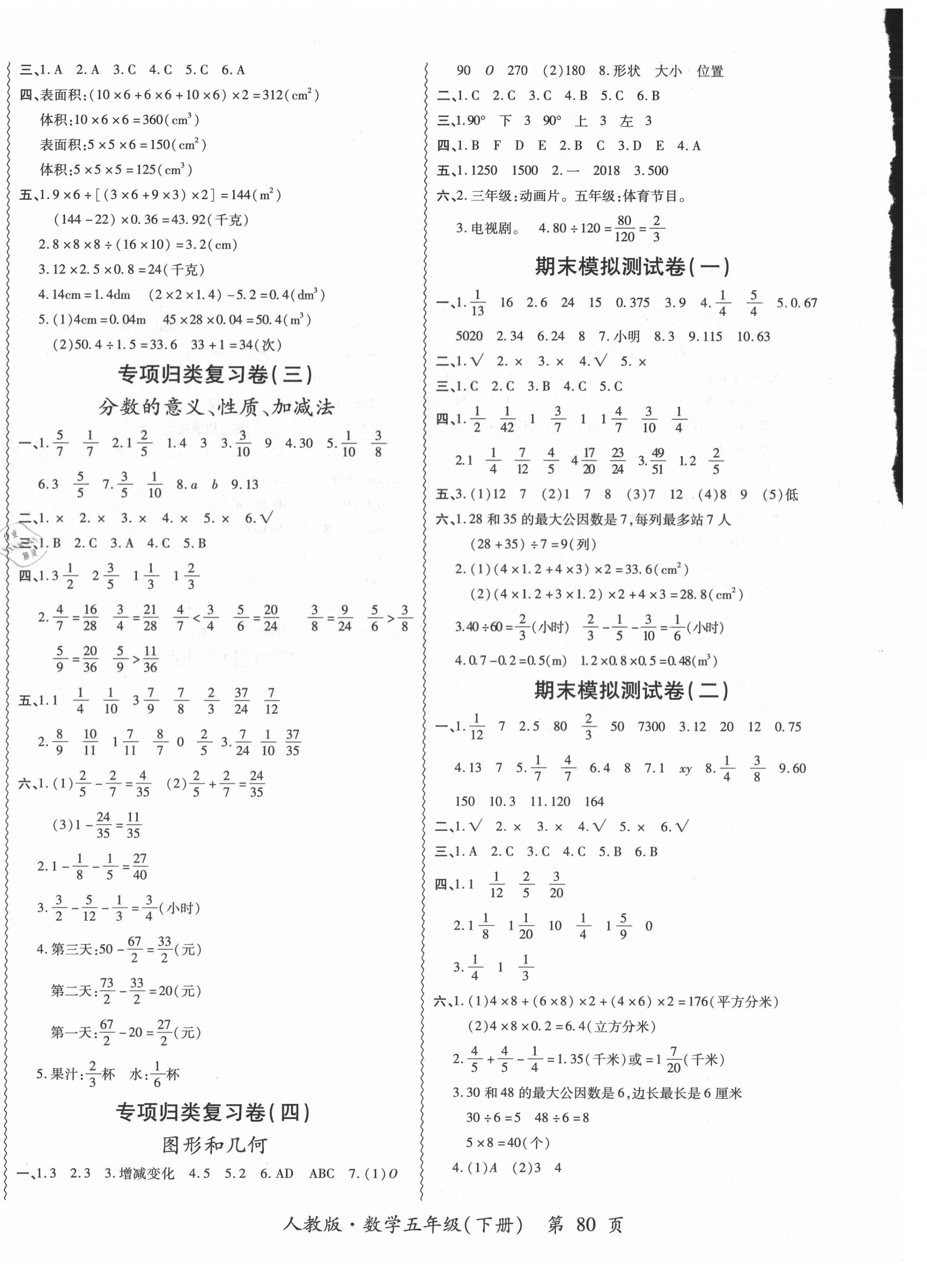 注:目前有些书本章节名称可能整理的还不是很完善,但都是按照顺序排列的,请同学们按照顺序仔细查找。练习册 2021年一路领航核心密卷五年级数学下册人教版 答案主要是用来给同学们做完题方便对答案用的,请勿直接抄袭。
