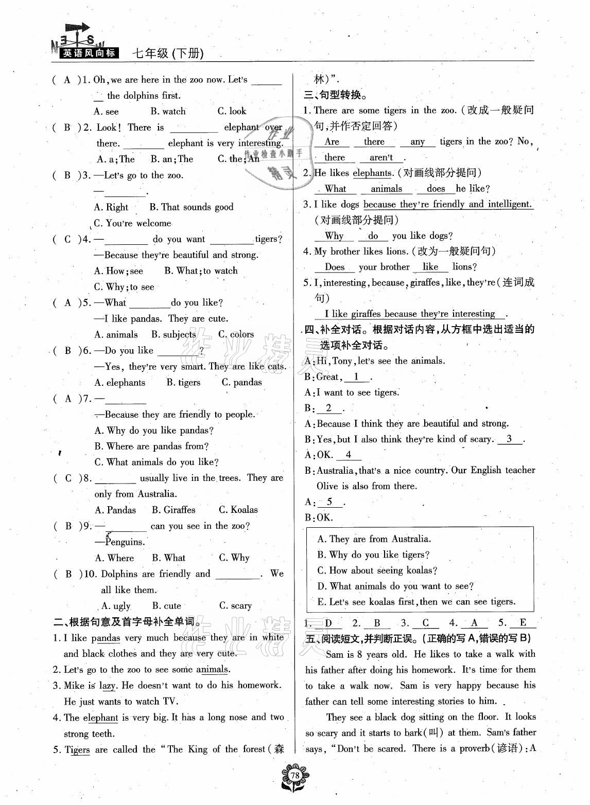 注:目前有些书本章节名称可能整理的还不是很完善,但都是按照顺序排列的,请同学们按照顺序仔细查找。练习册 2021年英语风向标七年级下册蓉城专版 答案主要是用来给同学们做完题方便对答案用的,请勿直接抄袭。