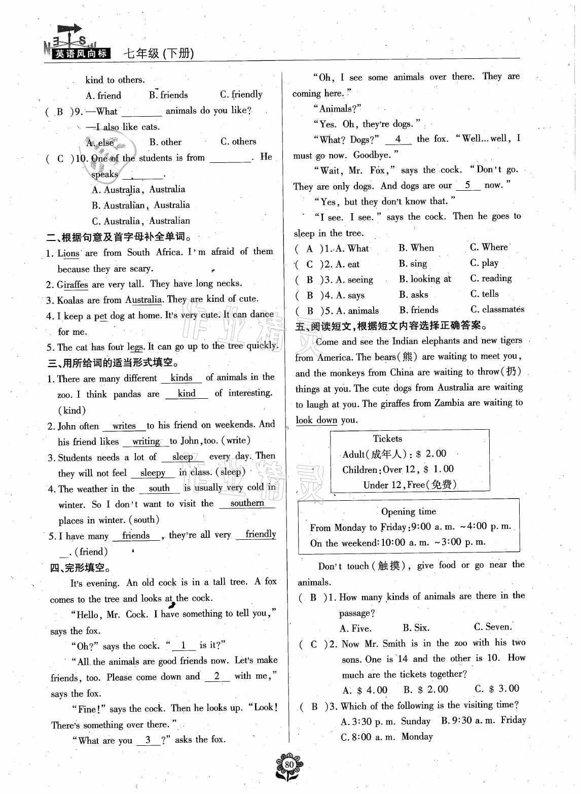注:目前有些书本章节名称可能整理的还不是很完善,但都是按照顺序排列的,请同学们按照顺序仔细查找。练习册 2021年英语风向标七年级下册蓉城专版 答案主要是用来给同学们做完题方便对答案用的,请勿直接抄袭。