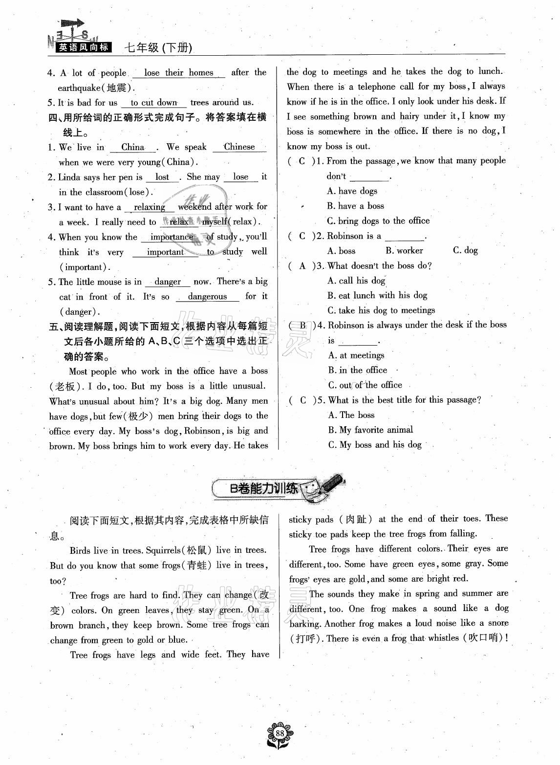 注:目前有些书本章节名称可能整理的还不是很完善,但都是按照顺序排列的,请同学们按照顺序仔细查找。练习册 2021年英语风向标七年级下册蓉城专版 答案主要是用来给同学们做完题方便对答案用的,请勿直接抄袭。