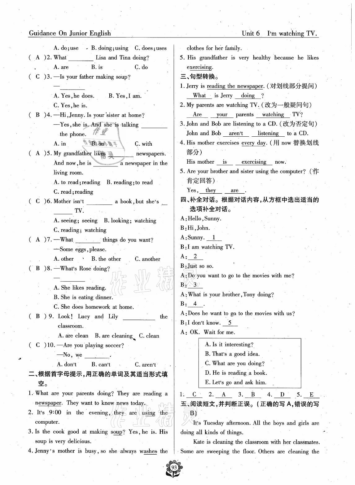 注:目前有些书本章节名称可能整理的还不是很完善,但都是按照顺序排列的,请同学们按照顺序仔细查找。练习册 2021年英语风向标七年级下册蓉城专版 答案主要是用来给同学们做完题方便对答案用的,请勿直接抄袭。