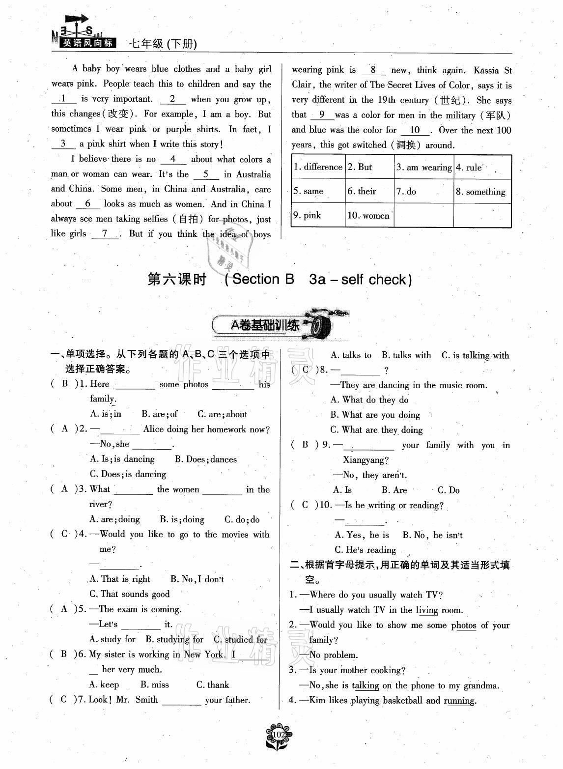 注:目前有些书本章节名称可能整理的还不是很完善,但都是按照顺序排列的,请同学们按照顺序仔细查找。练习册 2021年英语风向标七年级下册蓉城专版 答案主要是用来给同学们做完题方便对答案用的,请勿直接抄袭。
