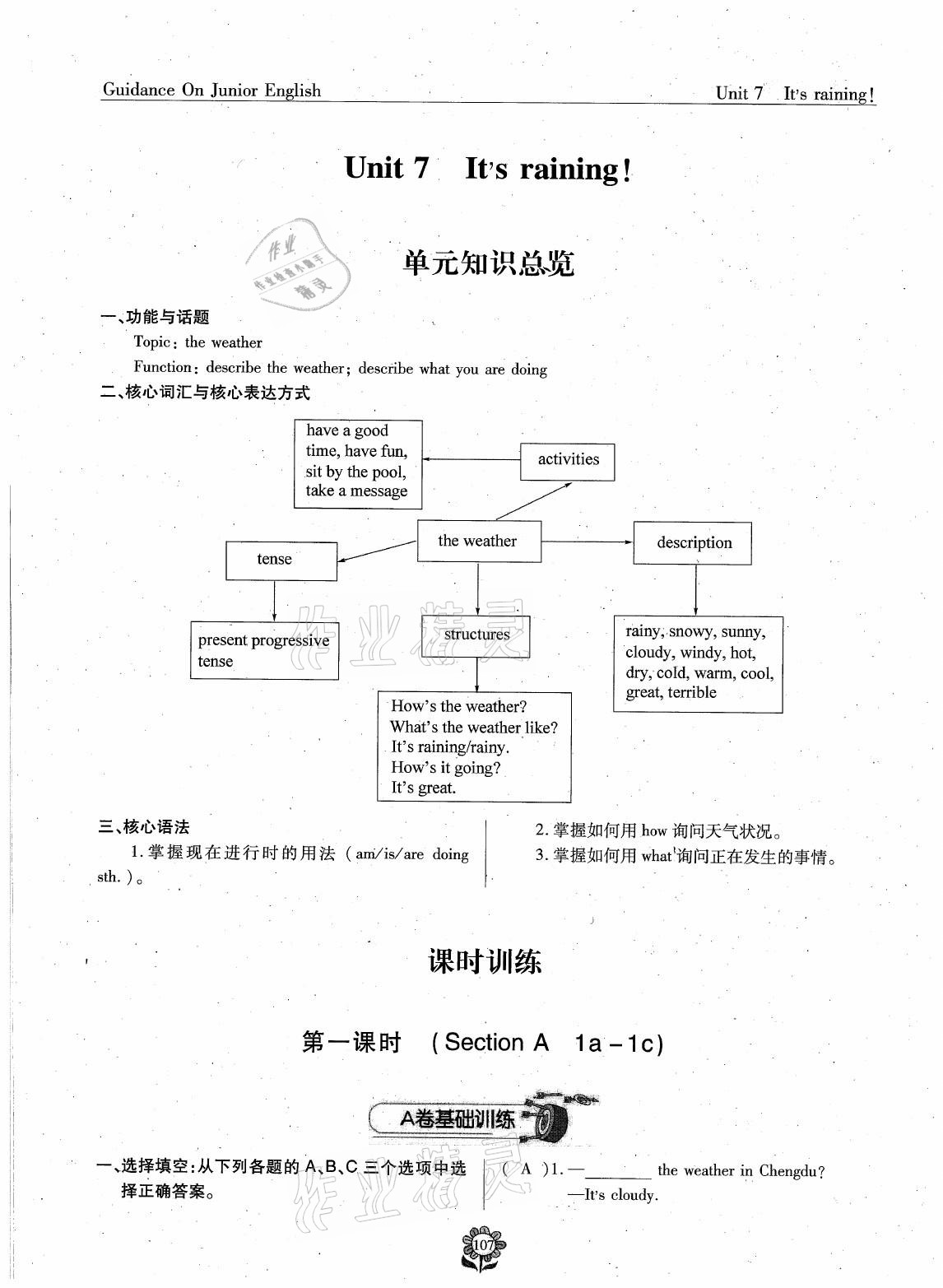 注:目前有些书本章节名称可能整理的还不是很完善,但都是按照顺序排列的,请同学们按照顺序仔细查找。练习册 2021年英语风向标七年级下册蓉城专版 答案主要是用来给同学们做完题方便对答案用的,请勿直接抄袭。