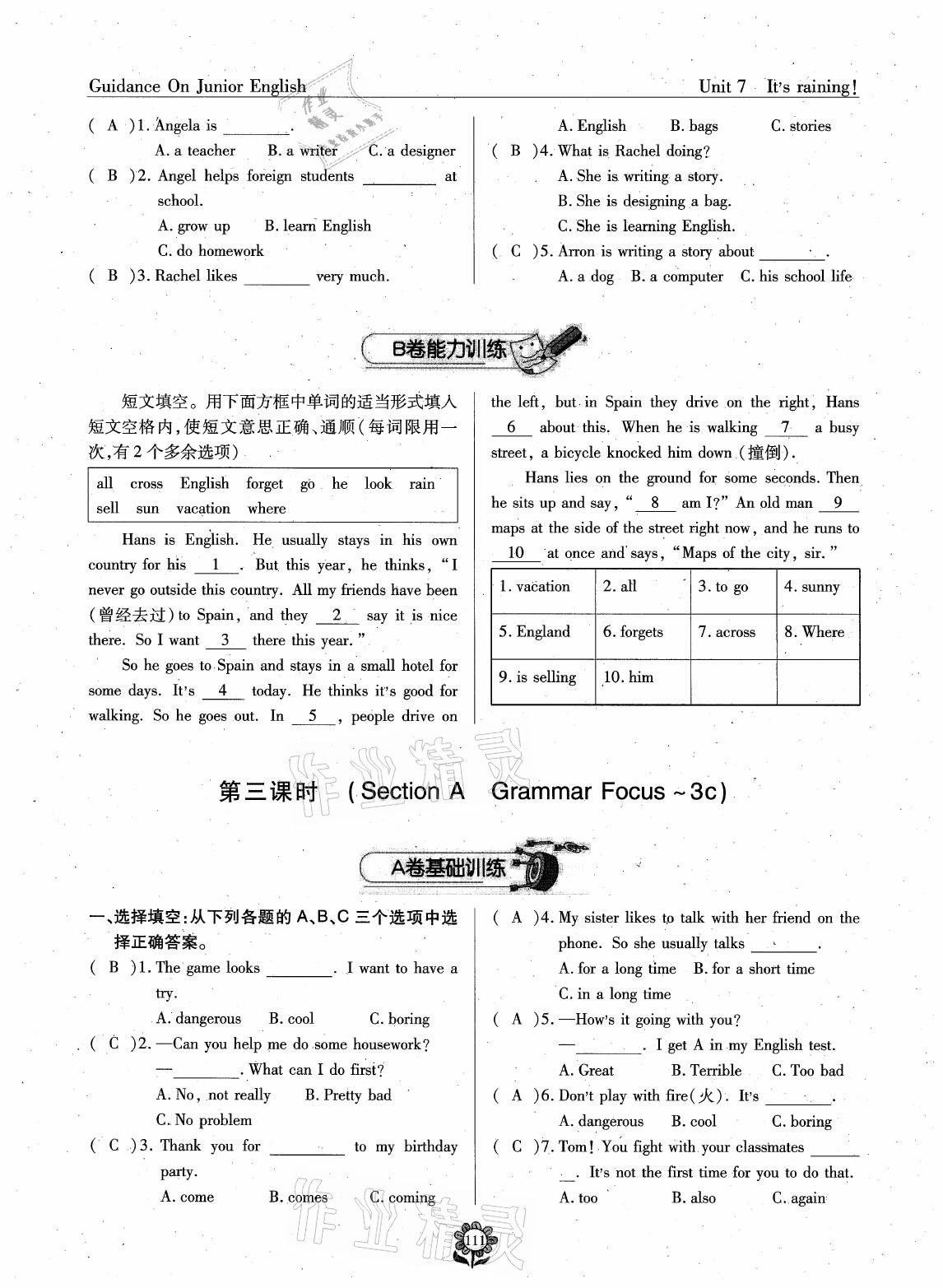 注:目前有些书本章节名称可能整理的还不是很完善,但都是按照顺序排列的,请同学们按照顺序仔细查找。练习册 2021年英语风向标七年级下册蓉城专版 答案主要是用来给同学们做完题方便对答案用的,请勿直接抄袭。
